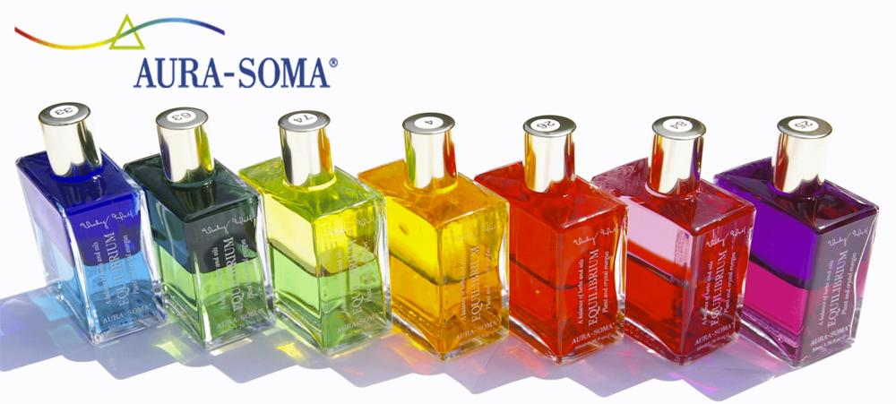 Этот вид цветотерапии включает в себя традиции лечения цветом Египта, Греции и Индии, а так же традиции лечения травяными экстрактами и эфирными маслами в сочетании с энергией кристаллов и минералов. "Aura-Soma" - "aura" в переводе с латинского значит "свет и цвет, мерцание", окружающее поле человека, а "soma" переводится как "тело" или "жизненная энергия".